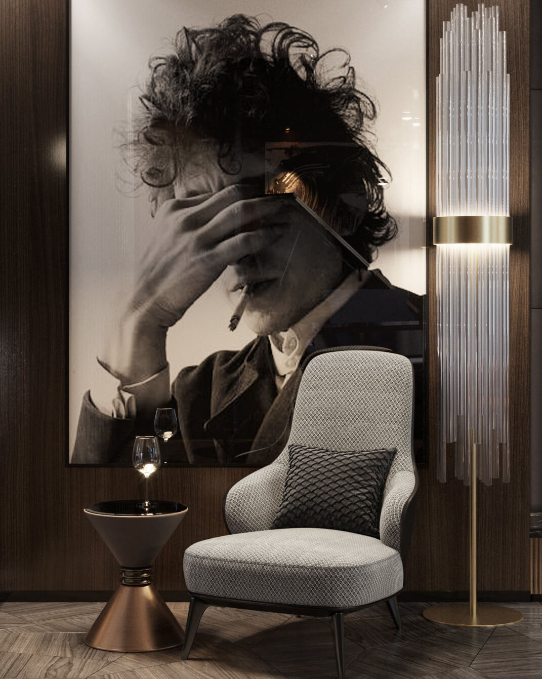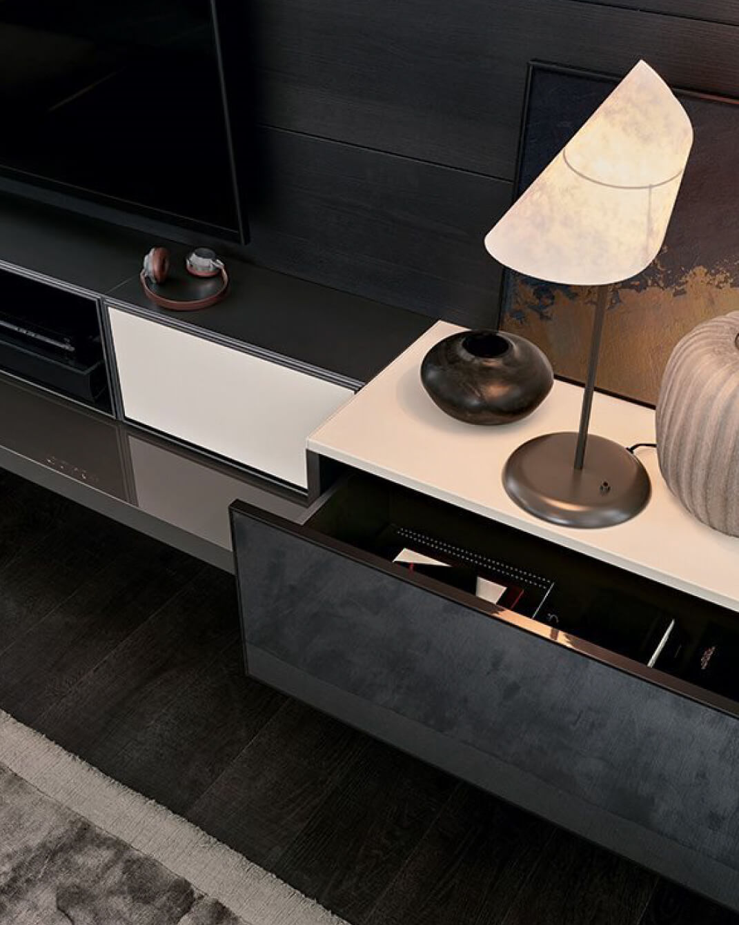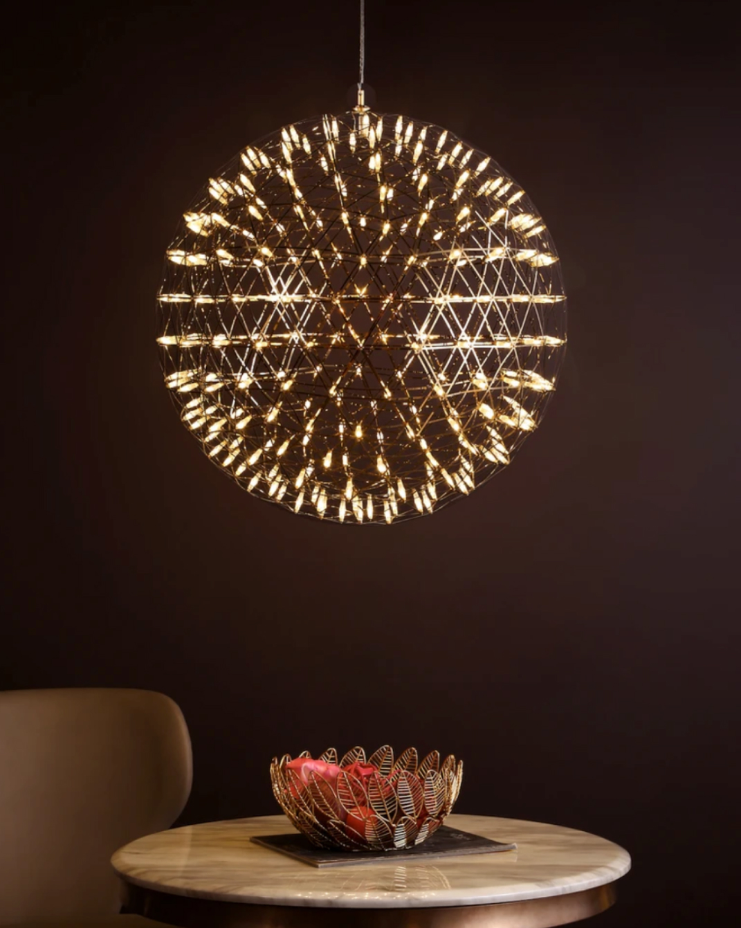 Bespoke lighting, silk-threaded rugs, and curated artisanal objects.